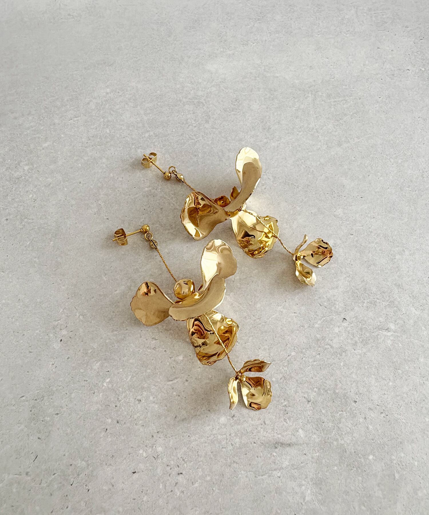 大ぶりのゴールドフラワーが花嫁さまをより華やかに引き立てるブライダルアクセサリー、Camlla (カメラ) earring / pierce.