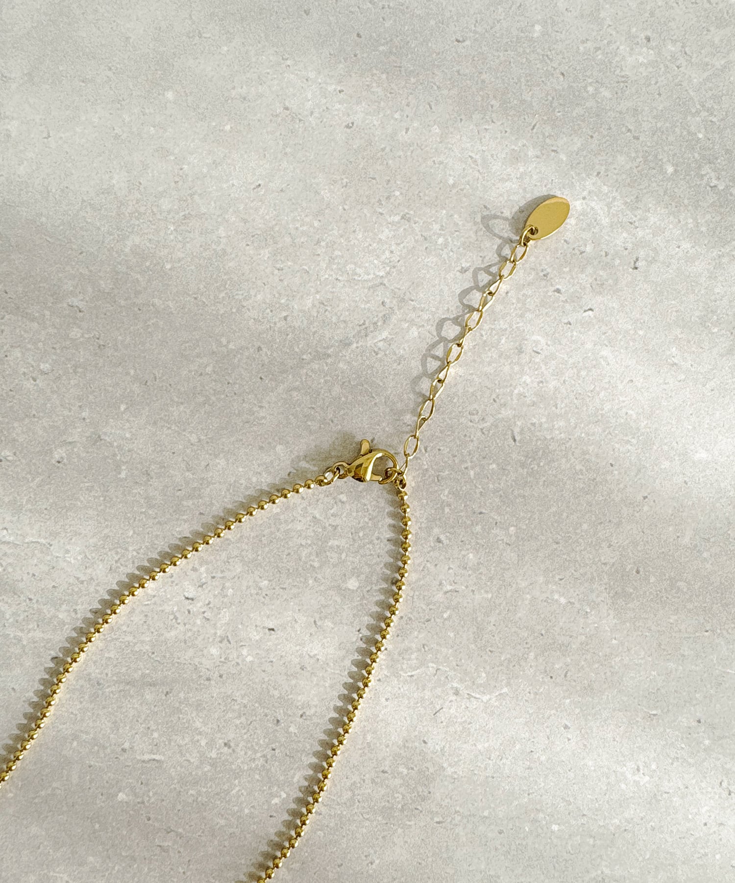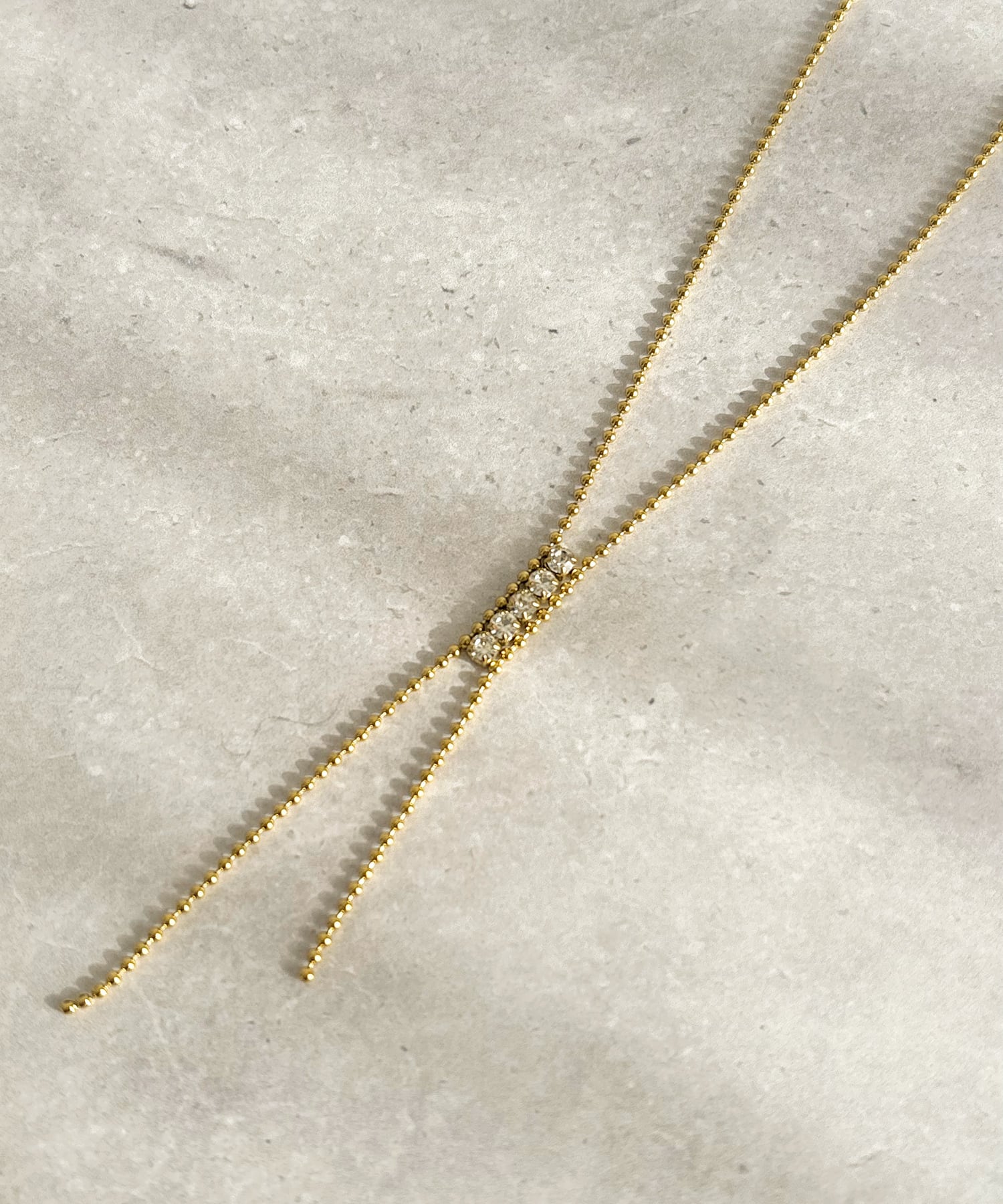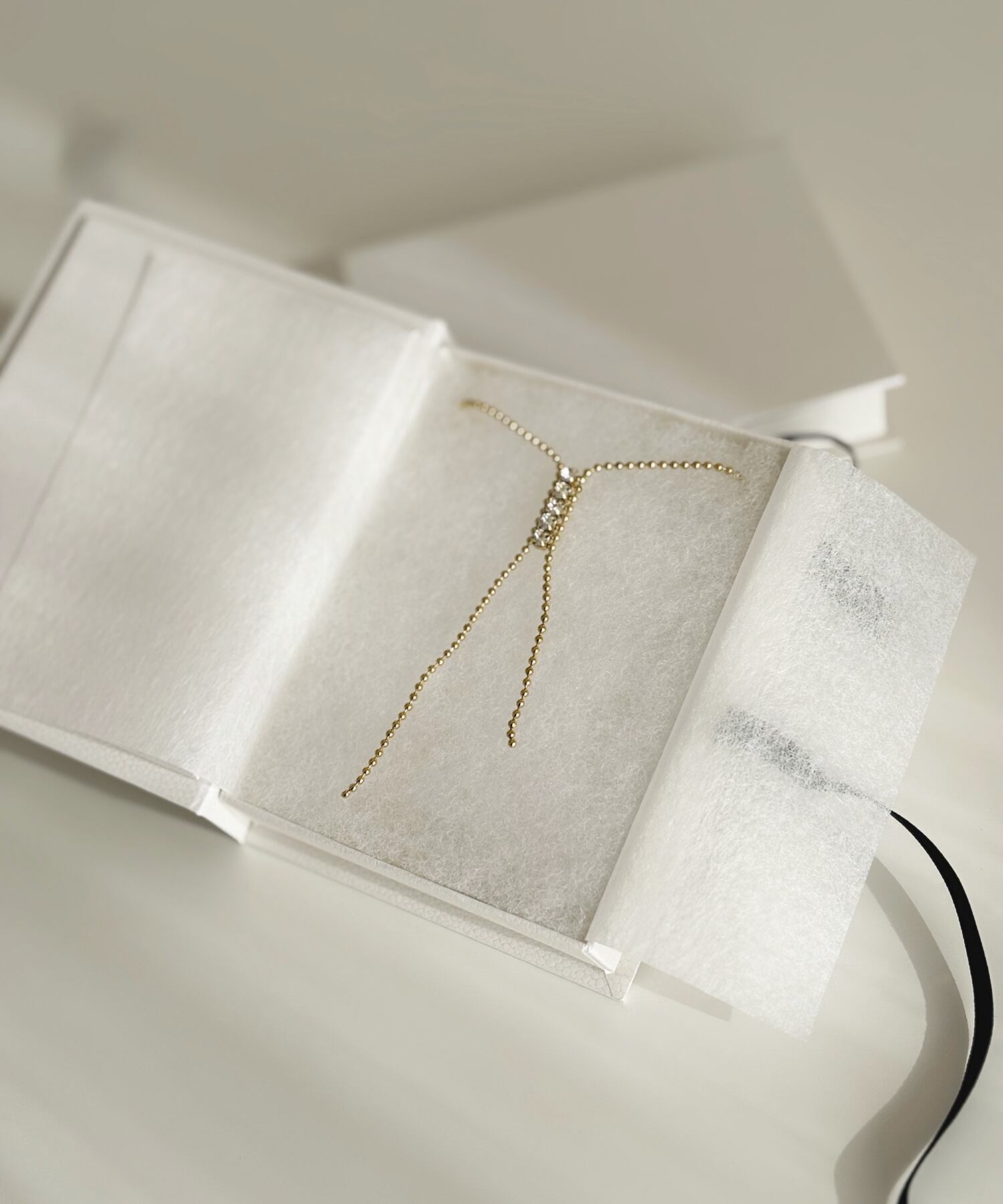 デコルテから胸元へのラインが美しく見えるよう、繊細なドットチェーンを程よくアシンメトリーにデザイン.