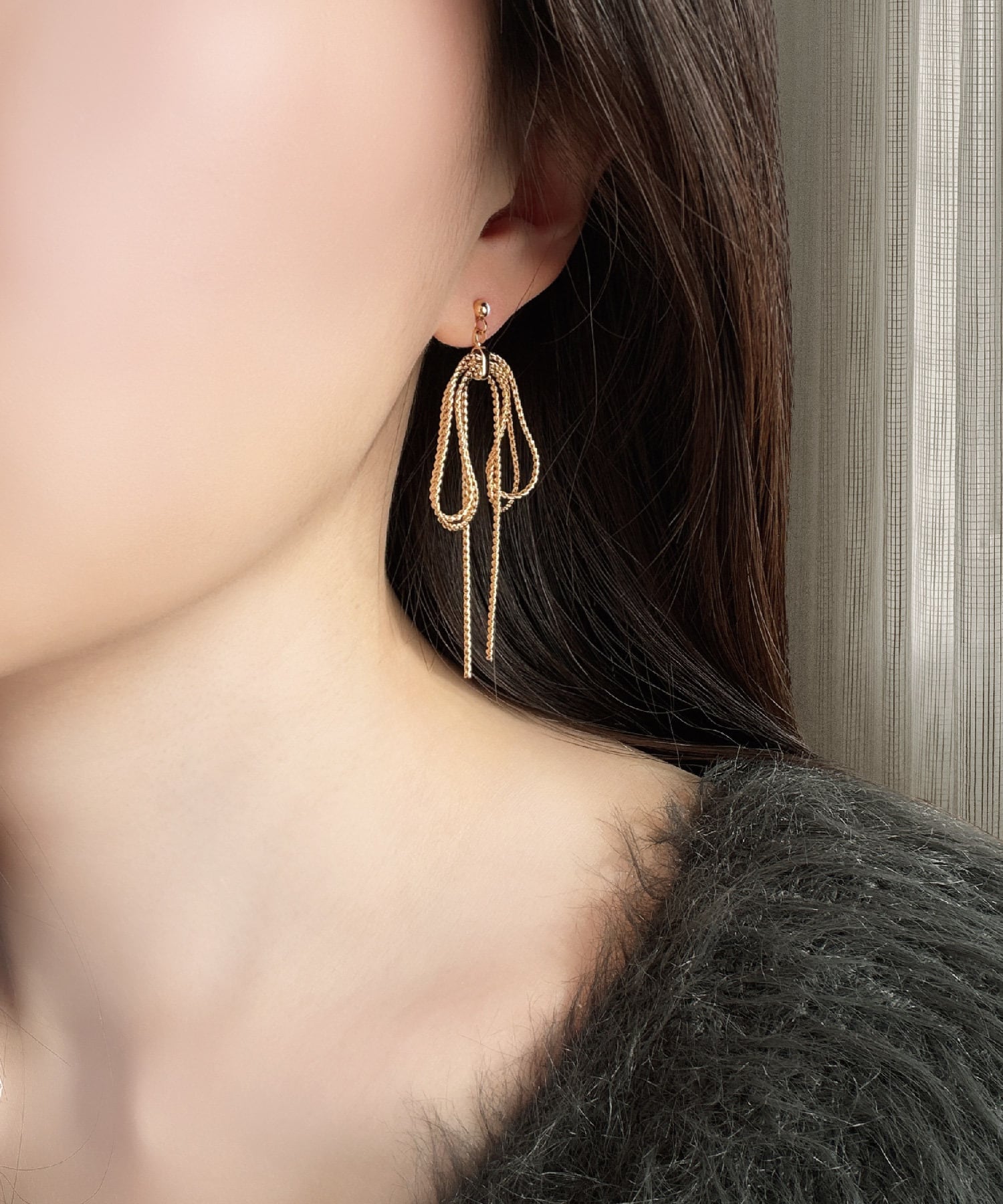 ネックレスチェーン2本分を贅沢に使用し、「揺れ感」を主役に仕立てた canvela(キャンベラ) ribbon earring / pierce.