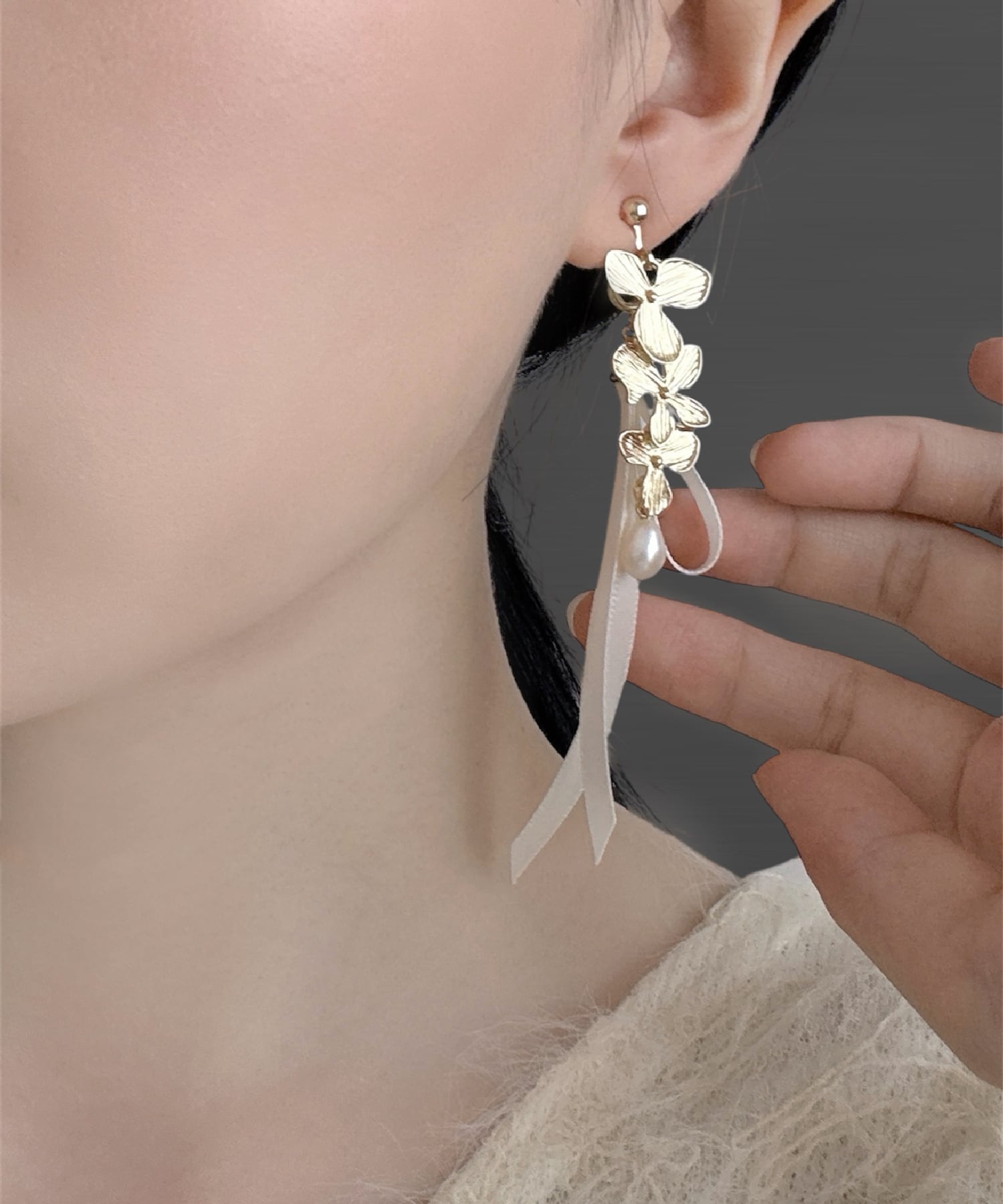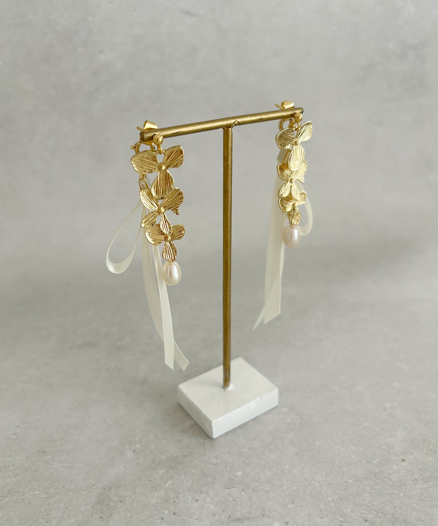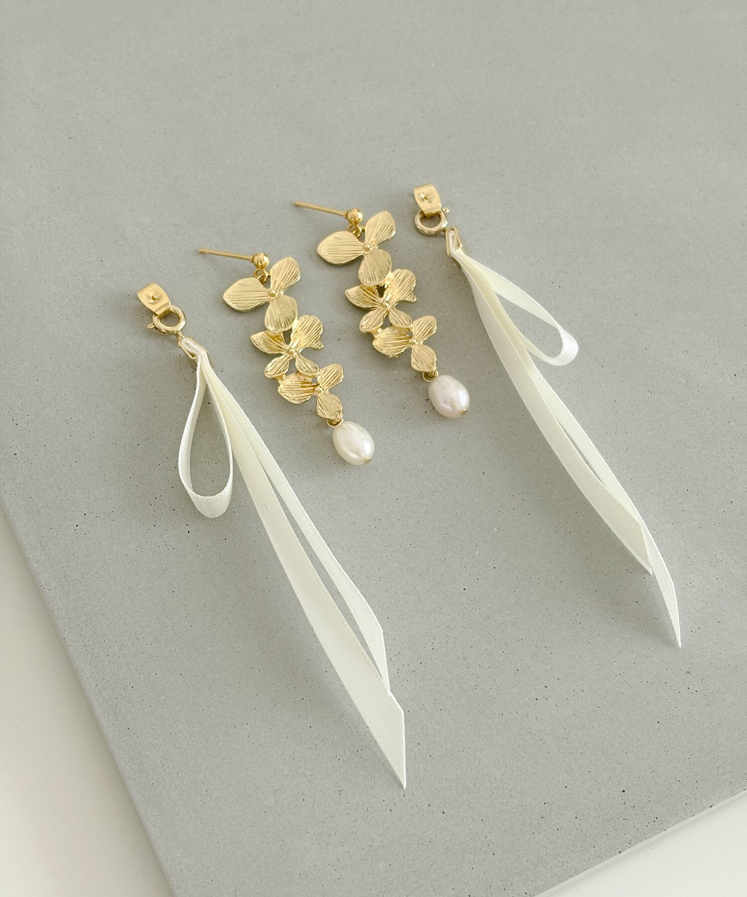 フラワー×淡水パール×リボンが大人可愛いmelu(メル) earring / pierce.