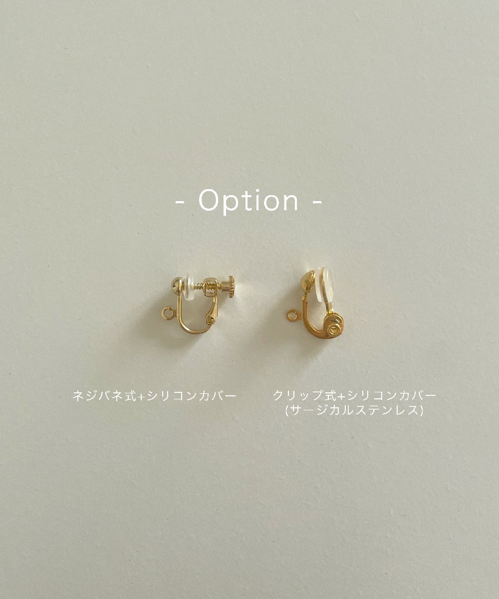 ・こちらはS I U R商品のイヤリングをお選びのお客様のみご選択いただけるオプションとなっております。(ピアスのみの商品をお選びいただいている場合、こちらをご選択いただいてもイヤリングへの変更はできかねますので予めご了承ください。)